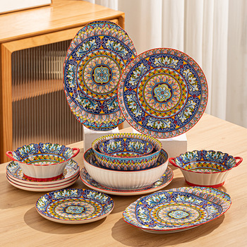 Nuovo stile bohémien pianta modello stoviglie in ceramica set per microonde ciotola di riso piatto piatto di pesce con Kit di utensili